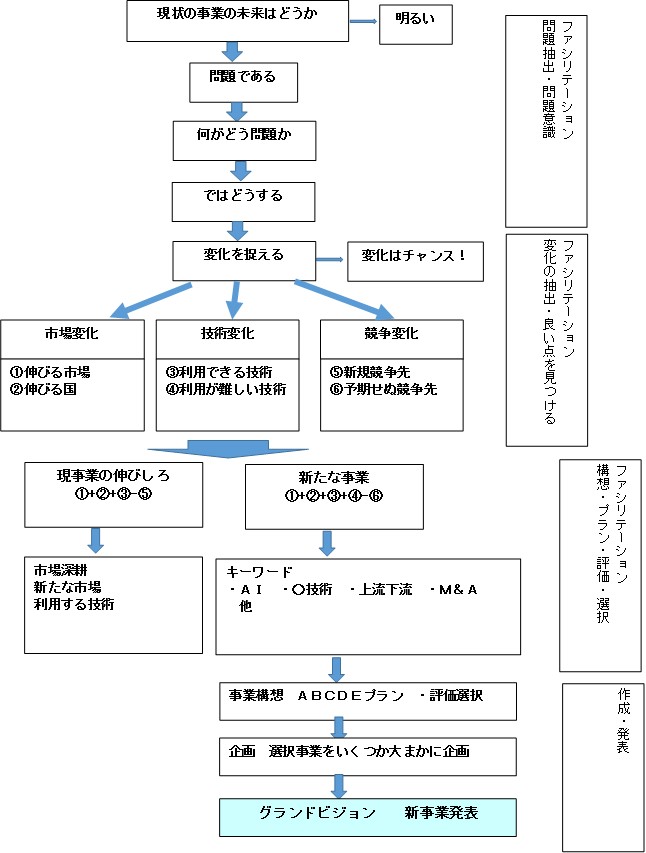 | 7.新事業実行後の会社の業績、ビジョンを検証する | @いくつかの新事業のグランドビジョンを描く A実現後の自社の中期ビジョンの達成度合いを評価 |